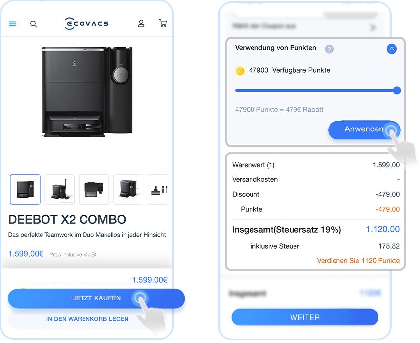 Die Nutzung der ECOVACS-Punkte unterliegt den vorliegenden Bedingungen.