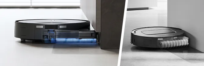 TruEdge 3.0 lets the roller hug edges and reach deep under furniture, door sills, and baseboards for full coverage, while Edge Gliding Air Felt prevents collisions during edge cleaning and turning.