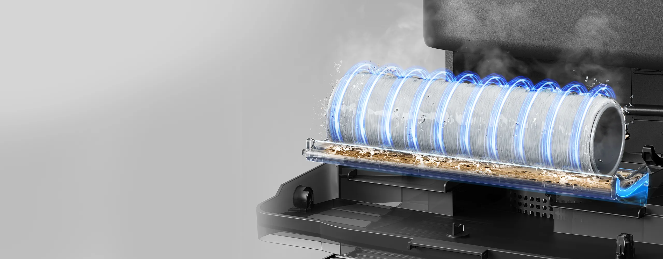 Exclusive lateral airflow channel and dense anti-static bristles work together to capture dust and pull in every hair effortlessly. The reinforced dual-bearing structure ensures stable rotation, delivering powerful scrubbing with minimal noise.
